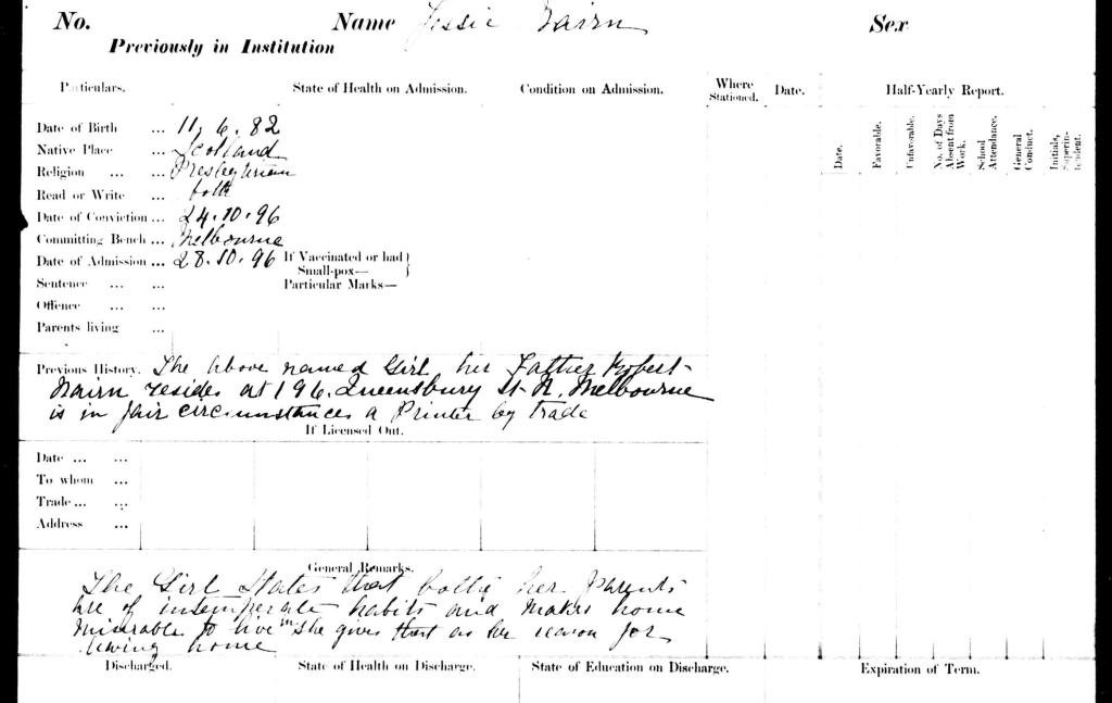And this is interesting, all, that most of the girls actually hadn’t committed what we would think of as a crime, they would be charged with being neglected. Jessie actually told the department of neglected children that her parents had quote “intemperate habits” that made her homelife quite tricky. So, Jessie was initially sent to the girls’ reformatory at Coburg, which was an annex to Pentridge prison.