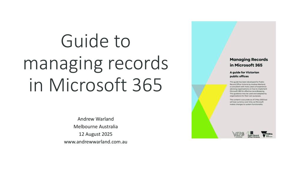 - Transitioning Government to digital records management, presented by Kate Steinfort from the Department of Premier and Cabinet's Enterprise Solutions Branch.
